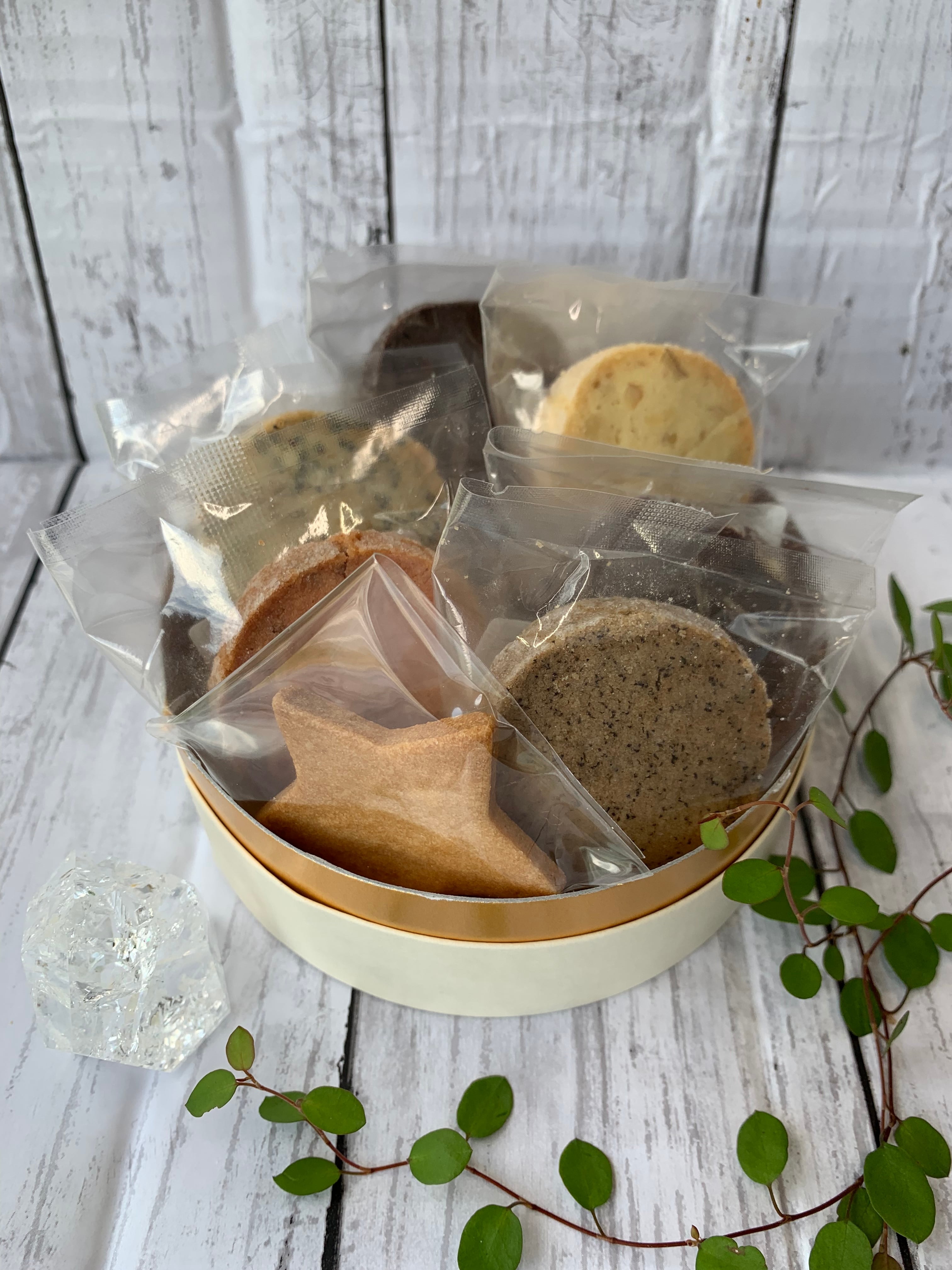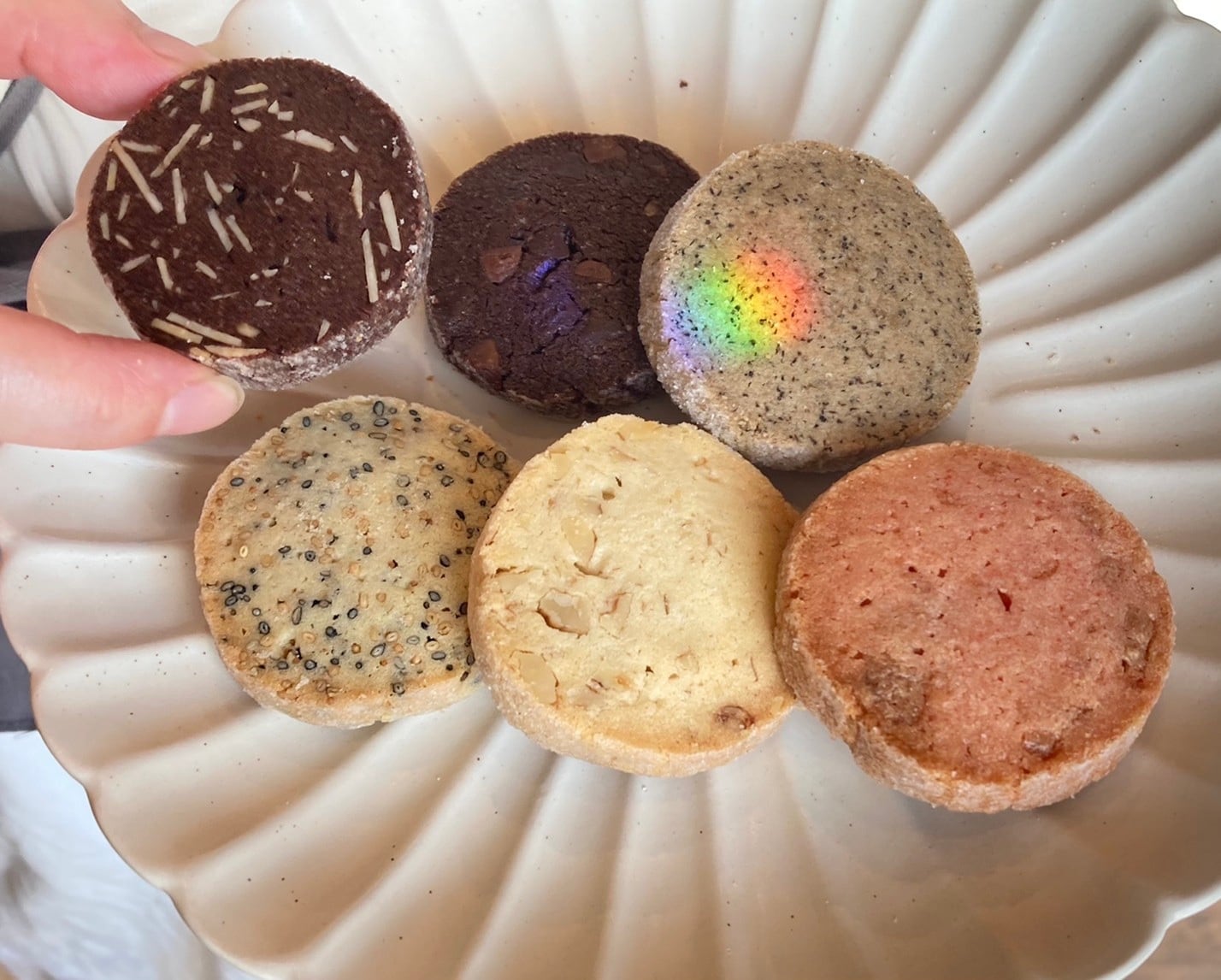 クッキー6種類(くるみ、ごま、紅茶、チョコチップ、アーモンドショコラ、いちご)とプレーンクッキー1枚入りのセット♡